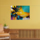 Golden Horizon är ett levande abstrakt konstverk inspirerat av den lugna skönheten i en tropisk solnedgång, återföreställd genom djärva färgsprut och uttrycksfulla moderna former. En lysande sol sjunker ner i en lugn horisont, omgiven av lager av varmt guld, tealblått och djupa havstoner, medan dramatiska palmsilhuetter inramar scenen med en känsla av rörelse och djup. De måleriska texturerna, droppande accenterna och dynamiska kontraster ger verket en samtida kant samtidigt som de fångar den tidlösa lugn som infinner sig en kväll vid havet.