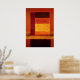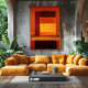 Ett lysande färgfält abstrakt konstverk med glödande gyllengul, bränd orange och djup karmosinröd rektanglar skiktade i mjuk atmosfärisk pigment. Det strålande centrala fältet frammanar värme och lugn medan omgivande färger skapar djup och balans. Idealisk modern abstrakt väggkonst för minimalistiska interiörer, samtida hem, ateljéer och konstelskare som söker eleganta geometriska färgkompositioner.