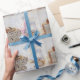 Golden julklappar och Rocking Horse Design Wrapping Papper En mycket elegant guldfärgad julomslutning papper för dina julklappar till dina kära. Den här designen har julklappar i gyllene papper och en underbar guldbarnhäst leksak som rockar. Dina barn kommer att få sina gåvor inslagna i den här vackra julen papper kärlek.