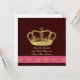 En vacker bröllopsinbjudan i fyrkantigt format. Söt illustration av en gyllene krona med flera mindre kronor tvärs över botten i en strimma av ljust rosa. Lägg till din egen text i valfri font eller färg för extra dramatik. Lek även med bakgrundsfärger!