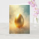 Designad med ett enda lysande gyllene ägg i mitten, känns denna scen som en tyst påskskatt 🐰. Varmt gult och mjukt orange ljus tycks stiga upp från den släta, lätt strukturerade ytan och bildar en mjuk gloria som känns som en öm kram. Ljust töcken virar sig runt basen som mjuka moln, lutar sig nära inpå som gamla vänner som delar en hemlighet. Under det skimrar en våt, glänsande mark översållad med små reflekterande droppar som glittrar som utspridda juveler 🌷. Bakgrunden tonar uppåt mot en sval blågrå dis som balanserar värmen med en lugn, kvällsluftsliknande tystnad. Nära toppen sitter enkel påsktext centrerad i ljust guld, framtr