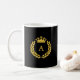 Gyllene monogram & krona med Fleur de Lis-blommor och lagerblad Mugg. Fleur de Lis står för kunglighet, dygd och harmoni.