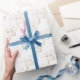 Ett stilrent inpackningspapper med ett mönster av kalligrafi-linjekonst och snöflingor. Den guld-gula färgen mot den vita bakgrunden. Denna design är anpassningsbar. Du kan byta bild. Du kan överföra designen till en annan produkt. Om du vill flytta bilden, anpassa den till en vald produkts form, eller lägga till text, använd knappen "Redigera design" eller "Personalisera" (beroende på situationen) som är blå. Den kommer att överföra dig till "Designverktyget" där du kan göra alla anpassningar. Var bara kreativ, anpassa och köp en, njut och var lycklig.