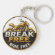 Ett runt emblem med en gyllene motorcykelillustration och fet text som främjar frihet och äventyrsanda. Designen utstrålar en fängslande energi genom sin livfulla och snygga grafik.