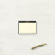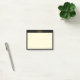 Post-it-lappar med elegant gyllene oändlighetssymbol på svart ram och ljusgul bakgrund. Texten "Ha en bra dag" kan anpassas.