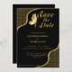 Gyllene ögonblick: Spara datum Svart och guld tema Inbjudningar