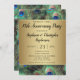 Årsdagsinbjudan som kan anpassas för alla år... Elegant och förfinad påfågelfjäderbakgrund i rika mättade färger av kunglig blå, kopparguld och tealgrön. Påfågeln är en statlig fågel med prydnadsfjädrar och den gör en vacker display för en sommarfest eller något annat tillfälle Metalliska gyllene övergångar lägger till en touch av glamour och förfining.