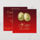 Glamourös illustration med 2 gyllene påskägg på röd bakgrund. Matchande kuvert för denna inbjudan: