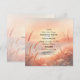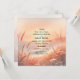 Fånga magin från den gyllene timmen med denna romantiska solnedgångsäng-bröllopsinbjudan, med mjuka persikofärgade himlar, ömtåliga kustgräs och en lugn havsutsikt. De varma, glödande tonerna och luftiga botaniska detaljerna skapar en fridfull, kärleksfylld atmosfär - perfekt för par som planerar en elegant strand-, kust- eller naturinspirerad fest.