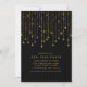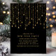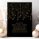 Guld och svarta strängljus Nyårsfest inbjudan. Denna design har eleganta gyllene glittersträngar. Anpassa denna anpassade nyårsdesign med dina egna festdetaljer.