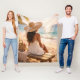 En lugn strandstund vecklar ut sig när en mörkhyad flicka graciöst sitter på en träbänk och suger åt sig värmen från den glödande solen. Hennes hatt med bred brätte kastar en mjuk skugga och tillför en elegant charm när det gyllene ljuset dansar över de milda vågorna.