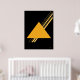 En slående minimalistisk konstverk med en monumental gyllene triangel genomskuren av skarpa diagonala staplar. Inspirerad av Bauhaus klarhet och Memphis djärvhet, är denna platta geometriska design perfekt för moderna, djärva och stilrena interiörer.
