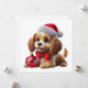 Skicka en touch av festlig magi med denna söta gyllene valp i en tomtehatt och slinga, åtföljd av ett skinande rött ornament. Perfekt för att sprida julvärme och glädje