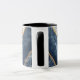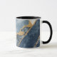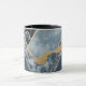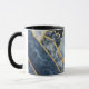 Bilden är en visuellt fängslande abstrakt som kombinerar geometriska former och mönster med ekologisk våg. Utformningen har en harmonisk blandning av trianglar, rektanglar och oregelbundna former, som alla kontureras med tunt gyllene linjer. Paletten i färg domineras av olika blå nyanser, från djuphavets marint till ljusblått himmel, kompletterat med fläckar av texturerat guld. Samspelet mellan coolan blues och det varma guld skapar en slående kontrast som gör sammansättningen djupare och rikare.