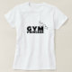 T-tröjan har en lekfull och kraftfull design, perfekt för dem som har en blandning av skicklighet och roligt. På framsidan står ord "Gym Princess" med fet stil, med snyggt, med en lätt gnistra som framkallar en känsla av kunglighet och styrka. Teckensnittet kan ha en blandning av skript och blockera stil, skapar det stå ut. Ovanför eller nedanför texten kan det finnas enkla illustrationer, som ett litet krona, en målarfärg eller till och med en barbell, där kreativet framhäver kombinationen av kondition och feminitet.