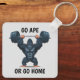 Var du än är med i den här nyckelkedjan. Med en muskulös gorilla som lyfter en barbell med sloganen "Go Ape or Go Home". Perfekt för nycklar, säckar eller som en unik gåva till fitnessentusiaster.