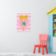 En söt blond gymnast på rosa bakgrund med ljus rosa accent ram.