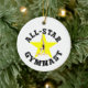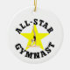 Gymnast på balstråle med vintage/nödlidande bokstäver.
