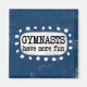 "Gymnaster har mer Roligt" är en söt textdesign med en vit accentform omgiven av vita vismiska punkter.