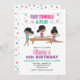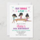 Vänd tumlare och spela! Gymnastika födelsedagsfest inbjudan i rosa, lila och turkos.