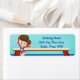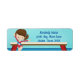 Den här söta gymnastik-returadressen har en söt brunette gymnast-flicka framför en bom. Hon bär ett rött leotard och ler bredvid adress i vackert blått.
