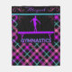Gymnastics Beam Rosa Lila Teal Tartan skriver ut med en gymnast på balansbjälken, delikata virvlar av rosa och hennes namn, skrivet i ett elegant med skript på lila.