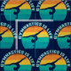 Gymnastiken är Life. Gastväv i solnedgång med en vacker färgstark bakgrund bakom en kvinna som gör ett söt handställ med spalterna.