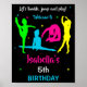 Välkomstskylt för gymnastikfest Flip Jump välkomstaffisch dekoration för tumbling-firande dansfest dekoration Välkomna gäster med denna livfulla gymnastikskylt! Den har färgglada gymnast-silhuetter i neon-grön, blå, rosa och gul på en svart tavla-bakgrund. Perfekt välkomstdekoration för gymnastik-födelsedagsfester, tumbling-firande och gym-tema evenemang. Iögonfallande design med stjärnor och lekfulla poser. Skapar en energisk atmosfär vid din festentré. Perfekt för aktiva barn som älskar gymnastik, volt och hopp! Byt bara en bild och redigera denna lättanvända mall för att göra den speciell.