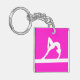 Keychain med en silhouette av en kvinnlig gymnast i handling. Skräddarsy baksidaen med ett namn och/eller ett år för det personliga handlag. Tillgängligt i olika färger och på andra produkter på mitt lager.