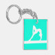 Keychain med en silhouette av en kvinnlig gymnast i handling. Skräddarsy baksidaen med ett namn och/eller ett år för det personliga handlag. Tillgängligt i olika färger och på andra produkter på mitt lager.