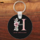 H Blommigt Monogram Namn Brev Rosa Agate Keychain Nyckelring