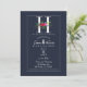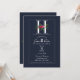 H Monogram Sist Initial Modern Blå Blommig Bröllop Inbjudningar