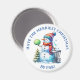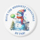 Ha den bästa julen till parvis. Diffeltematerad konst. Cute vattencolor tecknad snögubbe i Santa hat bredvid en skiva golf basket i snö vid Julgran.