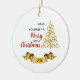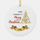 Ha dig glad jul presenteras lite på denna vit, keramisk prydnad. Texten är till det vänstert av ett guld, samtida rullajulgran. På grunden av prydnaden finns det ett guld- baner med året på det. På baksidaen av prydnaden finns det en mindre version av det guld- rullaträd, med ett område var du kan tillfoga ett personligt meddelande.