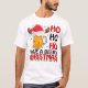 Den här vita t-tröjan har en tecknad öl mugg som bär en julhatt och renskjortor. Texten "HO HO HO" visas ovanför mugg och "HA EN BEERY CHRISTMAS" står nedan. Utformningen är festlig och humoristisk och kombinerar julhelgen med en kärlek för öl.