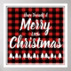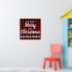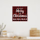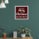 Festive poster med frasen "Ha en god jul" med en buffelbock med pläterad bakgrund, vit ram och söt vit fir träd.