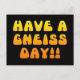 Ha en Gneiss-dag! - gult-orange på ett svart vykort.