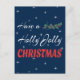 Ha en Holly Jolly-jultext med stjärnor, bär, ljus och vintergrön dekoration på mörk blått bakgrund