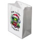 En tecknad groda i julhatten som håller en julklapp helgdag.
