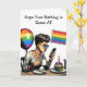 Ett födelsedagskort för en ridkompis. Hoppas att din födelsedag är bättre. Insidan är en färgsida för regnbågscupakor. LGBTQIA+-födelsedagskort.