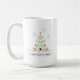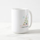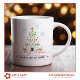 Lägg till en touch av julmagi i din morgonrutin med denna glada kaffekopp som har en enkel illustration av en julgran prydd med julkulor, snöflingor, elegant röd scripttypografi som lyder “God Jul,” och anpassningsbar text som säger, “Ha en kopp glädje.” Behåll den nuvarande texten eller lägg till ditt namn eller en vän eller en nära och käras namn.