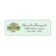 Adressetiketter med en "St. Patrick's Day"-temavbildning. En retro grunge stil-design som säger: Ha en turdag. Med en färgstark regnbåge bakom sig. Ord skrivet i en tjock rundad reflex stil vibe. Rosa och grönt färg.