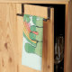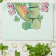 En kökshandduk med en "St. Patrick's Day"-temabild. En retro grunge stil-design som säger: Ha en turdag. Med en färgstark regnbåge bakom sig. Ord skrivet i en tjock rundad reflex stil vibe. Rosa och grönt färg.