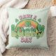 Pillow med en temabild från St. Patrick's Day. En retro grunge stil-design som säger: Ha en turdag. Med en färgstark regnbåge bakom sig. Ord skrivet i en tjock rundad reflex stil vibe. Rosa och grönt färg.