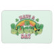 Flexibel magnet med en tematisk bild av St. Patricks Day. En retro grunge stil-design som säger: Ha en turdag. Med en färgstark regnbåge bakom sig. Ord skrivet i en tjock rundad reflex stil vibe. Rosa och grönt färg.