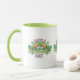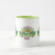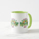 Ett mugg med en S:t Patricks Dag-bild. En retro grunge stil-design som säger: Ha en turdag. Med en färgstark regnbåge bakom sig. Ord skrivet i en tjock rundad reflex stil vibe. Rosa och grönt färg.