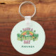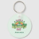 En nyckelkedja med en "St. Patrick's Day"-temabild. En retro grunge stil-design som säger: Ha en turdag. Med en färgstark regnbåge bakom sig. Ord skrivet i en tjock rundad reflex stil vibe. Rosa och grönt färg.