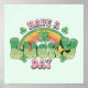 Poster med en tematisk bild på St. Patrick's Day. En retro grunge stil-design som säger: Ha en turdag. Med en färgstark regnbåge bakom sig. Ord skrivet i en tjock rundad reflex stil vibe. Rosa och grönt färg.