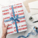Ha en Hockey-julklapp som är papper, med en röd snöflingstext på vit snöflingbakgrund.
