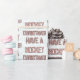 Ha en Hockey-julklapp som är papper, med en candy cane-röd och vit textdesign på en snöflingerbakgrund.